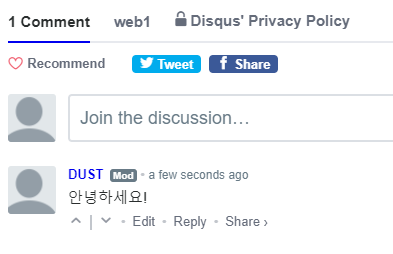 1.html코드에 dispus를 이용해 댓글기능을 추가하는 과정이다
