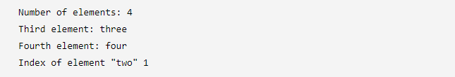 println("Index of element \"two\" ${numbers.indexOf("two")}")