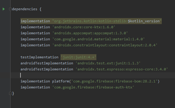 앱 수준의 build.gradle에서 implementation 'com.google.firebase:firebase-auth-ktx' 추가